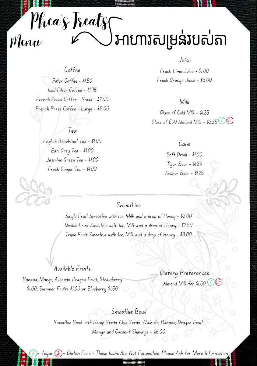 Welcome to Phea’s Treats, a delightful café nestled opposite the Kim Seng Express Bus Station in Krong Saen Monourom, Cambodia. This charming establishment is a hidden gem that promises not just a meal, but a memorable experience, thanks to the warm hospitality of its owners, Mitch and Phea.